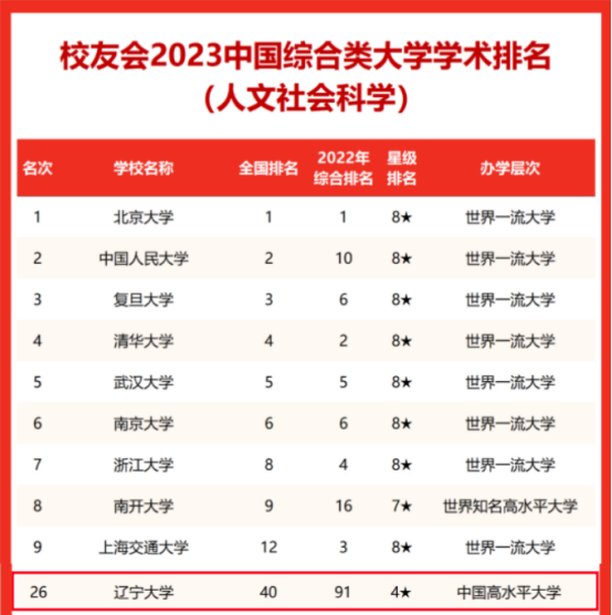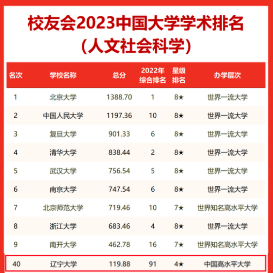 近日,艾瑞深中国校友会网发布多篇学术榜单,我校在2023中国大学学术排名人文社会科学40位,校友会2023中国综合类大学学术排名(人文社会科学)第26位,校友会2023中国地方大学学术排名(人文社会科学)第11位,校友会2023辽宁省大学学术排名(人文社会科学)第1位。